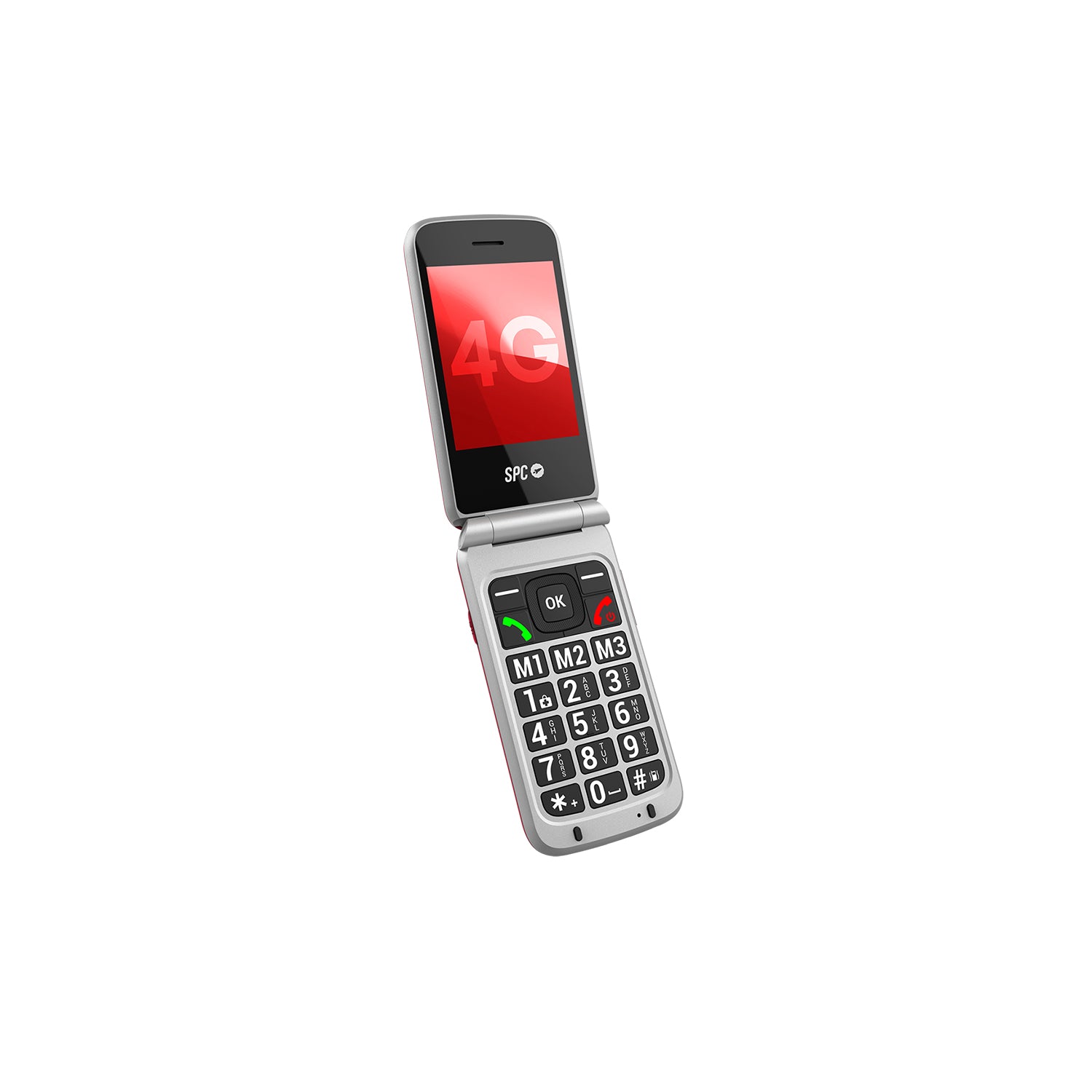 Téléphone mobile 4G avec grandes touches, menu simple, écran 2,4 pouces (noir) ou 2,8 pouces (rouge), 9 jours d’autonomie en utilisation standard, touche SOS, SMART HELP, appareil photo arrière et 3 mémoires rapides
